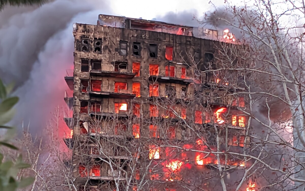 Un incendio de proporciones devastadoras se ha desatado este jueves por la tarde en el barrio de Campanar de València, arrasando por completo un complejo residencial de 14 plantas ubicado en la confluencia de la avenida General Avilés y la calle Maestro Rodrigo. El aviso de alerta se recibió a las 17:35 horas.