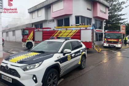 Efectius del Consorci Provincial de Bombers de Castelló treballen des d’aquest dilluns de matí en un incendi de grans proporcions declarat en una nau de venda de mobles a la localitat de la Vall...