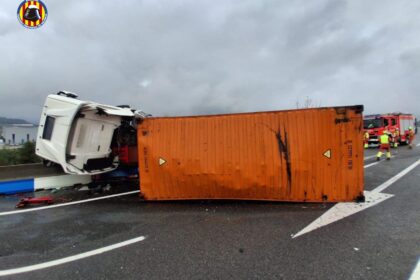 Un camió de mercaderies perilloses ha patit este diumenge la rebentada d’una roda mentres circulava per la A-7, a l’altura del terme municipal de Godella (València). Com a conseqüència, un...