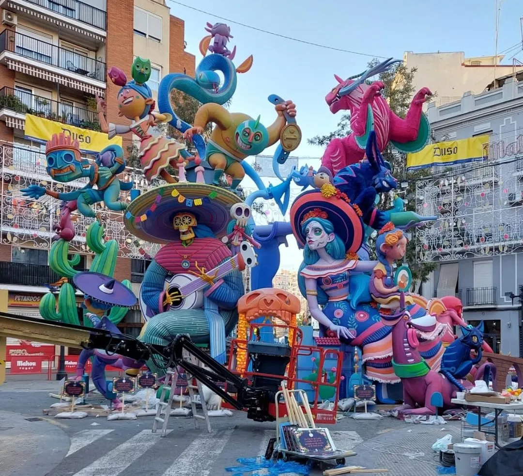 L’heroisme ha sorgit de la desesperació: fallers de la Dama d’Elx es van desplaçar al taller en plena matinada, on van trobar l’artista pintant peces aïllades rodejat de monuments incomplets. Carregant el que van poder en furgonetes i cotxes particulars, i tirant mà de ninots guardats d’altres anys, van aconseguir “plantar” una falla improvisada per a no deixar la plaça buida.