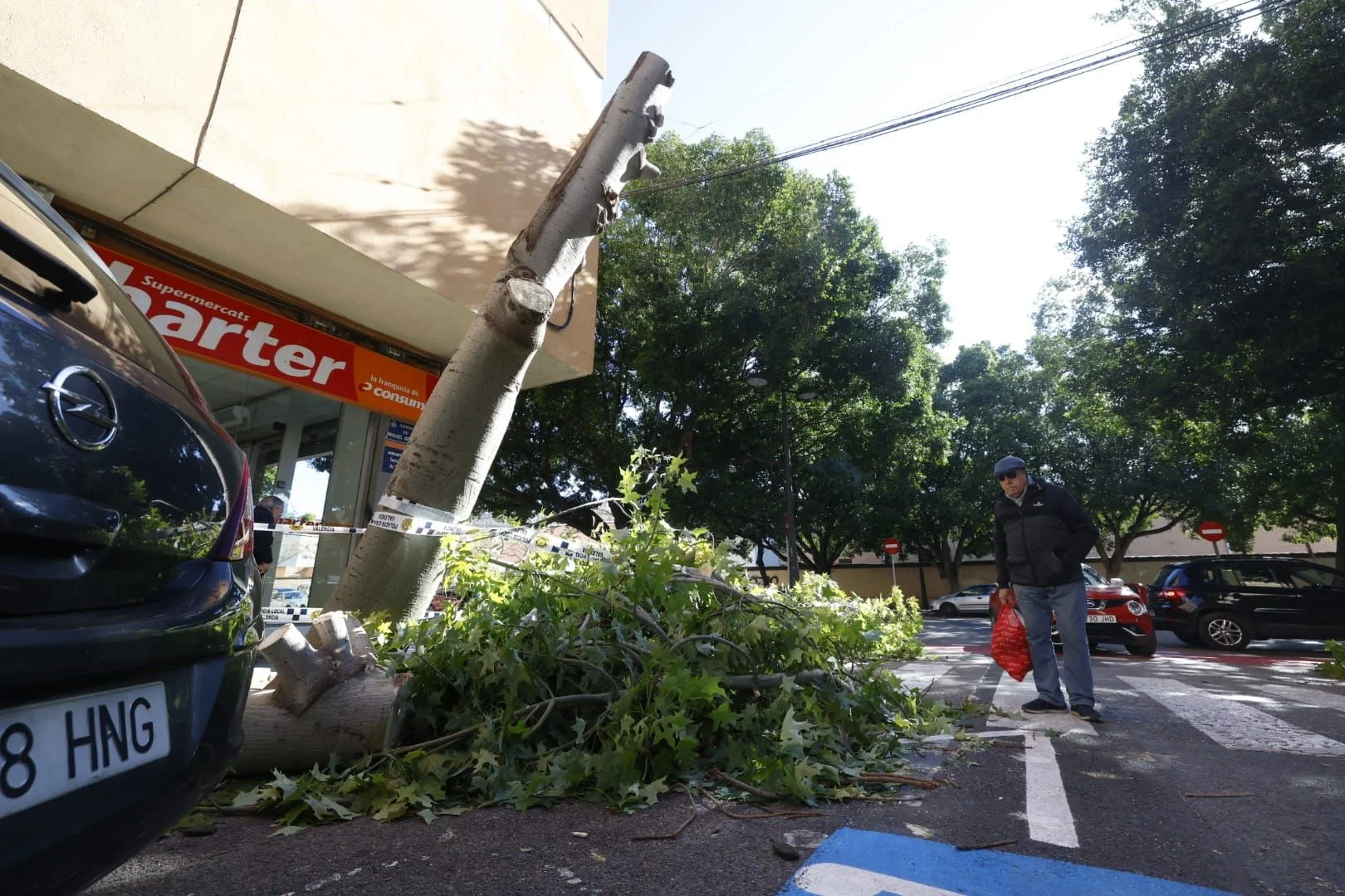 La fúria d’Ingrid també s’ha sentit amb força a l’Horta Nord. A Alboraia, la Policia Local ha hagut d’actuar amb rapidesa quan un arbre de gran port s’ha trencat i ha quedat travessat enmig del carrer Palmaret. Els agents han tallat la circulació immediatament mentre els serveis de jardineria trossejaven el tronc per a alliberar la calçada. Afortunadament, com en la resta de municipis, només s’han hagut de lamentar danys materials i un fort susto entre els veïns.