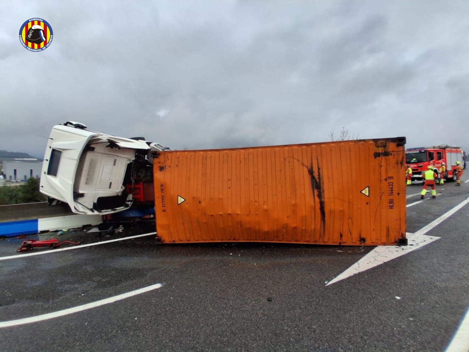 Home / Serveis / Un camión vuelca en la A-3 a la altura de Buñol sin heridos atrapados
